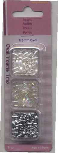 Oval Pearls Trio - Weiß-Transparant-Silber