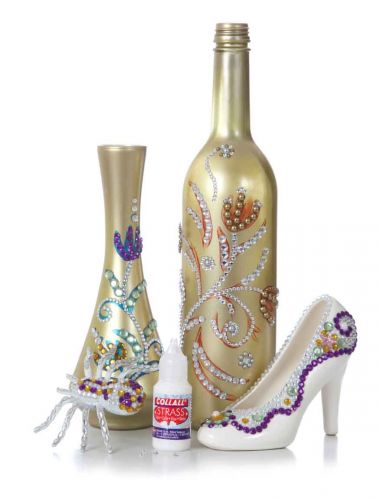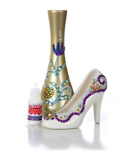 Starker Haftkleber, der transparent austrocknet. Für die Verklebung von Strasssteinen auf Textilien, Papier, Pappe, Holz, verschiedenen Kunststoffen und Metallen. Ideal für die Herstellung von Schmuck.