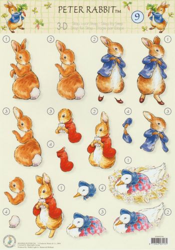 Art.code: 3DA4-1109 Beatrix Potter - Peter Rabbit - 3 D A4 Step by St...Beatrix Potter - Peter Rabbit - 3 D A4 Step by Step Decoupage Sheet Size: A4 - 21 x 29,7cm - 8.3 x 11.7in A4 Sheet on good quality white paper With clear step by step description Acid-free and Wood-f... Read moreMore infomation