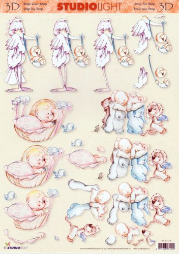 Art.code: 3DA4-0431 Birth - 3 D A4 Step by Step Decoupage Sheet Size:...Birth - 3 D A4 Step by Step Decoupage Sheet Size: A4 - 21 x 29,7cm - 8.3 x 11.7in A4 Sheet on good quality white paper With clear step by step description Acid-free and Wood-free paper that does not ... Read moreMore infomation -