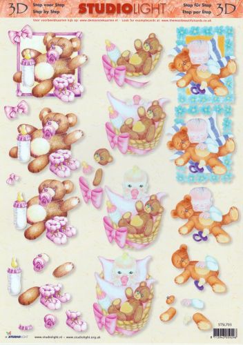 Birth - Bears - 3DA4 Step by Step Decoupage Sheet