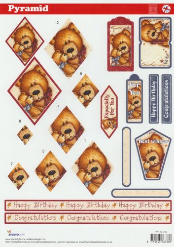 Art.code: 3DA4-pyrsl219 Bears - Pyramid - 3 D A4 Step by Step Die Cut She...Bears - Pyramid - 3 D A4 Step by Step Die Cut Sheet Size: A4 - 21 x 29,7cm - 8.3 x 11.7in A4 Sheet on good quality white paper1 Sheet in A4 Hanger Bag With clear step by step description Acid-free an... Read moreMore infomation -