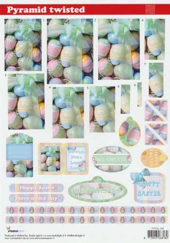 Art.code: 6031 Easter - Pyramid - 3 D A4 Step by Step Decoupage ...Easter - Pyramid - 3 D A4 Step by Step Decoupage Sheet Size: A4 - 21 x 29,7cm - 8.3 x 11.7in A4 Sheet on good quality white paper Contents: 2 kinds Pyramide Cards and 2 Envelopes With clear step by ... Read moreMore infomation -