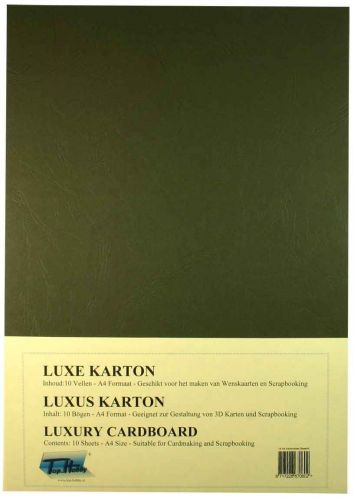 Art.code: KB-107c-133 Luxury A4 Cardboard Package - Leather Dark Olive ...Luxury A4 Cardboard Package - Leather Dark Olive green - 10 Sheets Colour: Leather Dark Olive green Size: A4 - 21 x 29,7cm - 8.3 x 11.7in Contents: 10 Sheets Material: 240g Acid free and Lingnine fr... Read moreMore infomation -