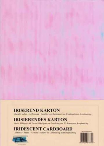 Art.code: KB-IRI01 Iridescent Cardboard Package Colour: o.a White, Y...Iridescent Cardboard Package Colour: o.a White, Yellowl and Pink nuances - Back side White Size: A4 - 21 x 29,7cm Contents: 4 Sheets Ean-code: 8717228673719... Read moreMore infomation -