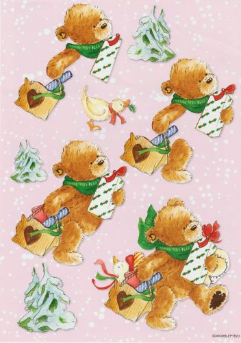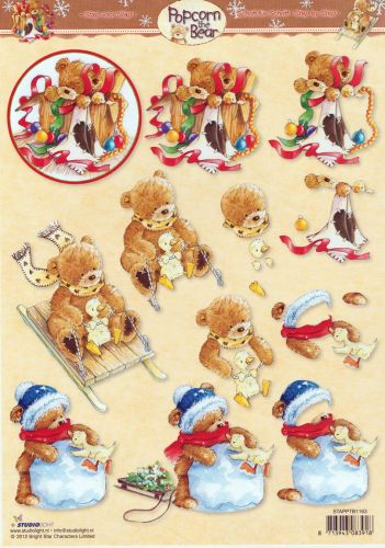Popcorn the Bear Christmas - 3DA4 Step by Step Decoupage Sheet