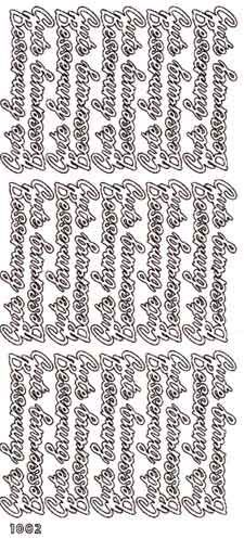 Art.code: 1002-2 Gute Besserung - Peel- Off Stickers Sheet Colour:...Gute Besserung - Peel- Off Stickers Sheet Colour: Silver Size: 10 x 23cm - 3.9 x 9.1in Available in colours: Gold-1, Silver-2 Acid free German language Peeloffs are outline hobby stickers of the best... Read moreMore infomation -