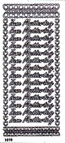 Art.code: 1019-1 Zum Muttertag - Peel- Off Stickers Sheet Colour: ...Zum Muttertag - Peel- Off Stickers Sheet Colour: Gold Size: 10 x 23cm - 3.9 x 9.1in Available in colours: Gold-1, Silver-2 Acid free German language Peeloffs are outline hobby stickers of the best qu... Read moreMore infomation -