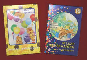 Art.code: WK-EDD 50 Wenskaarten Doosjes Inhoud Doosje 10 kaarten me...50 Wenskaarten Doosjes Inhoud Doosje 10 kaarten met envelop2 type doosjes per overdoos Contents 10 Cards with envelop - Dutch Language... Read moreMore infomation -