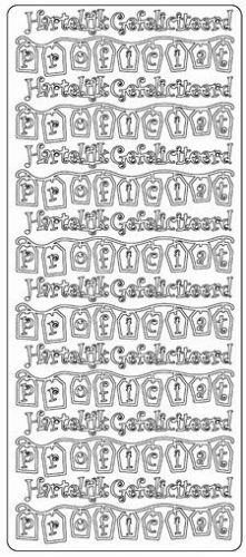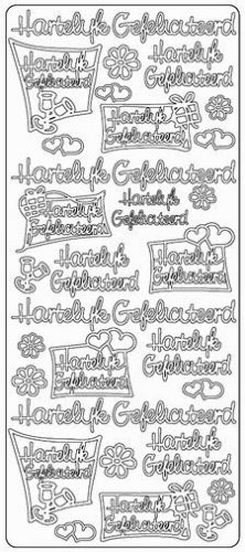 Art.code: ST-0117-2 Hartelijk Gefeliciteerd Peel- Off Stickers Sheet ...Hartelijk Gefeliciteerd Peel- Off Stickers Sheet Colour: Silver Size: 10 x 23cm - 3.9 x 9.1in Available in colours: Gold-1, Silver-2, Multi-3 Acid free Dutch language Peeloffs are outline hobby stick... Read moreMore infomation -