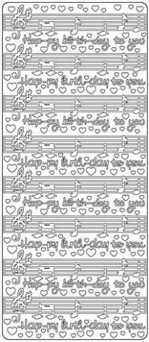 Art.code: ST-0121-2 Happy Birthday - Musical Notes Peel- Off Stickers...Happy Birthday - Musical Notes Peel- Off Stickers Sheet Colour: Silver Size: 10 x 23cm - 3.9 x 9.1in Available in colours: Gold-1, Silver-2, Multi-3 Acid free Peeloffs are outline hobby stickers of t... Read moreMore infomation -