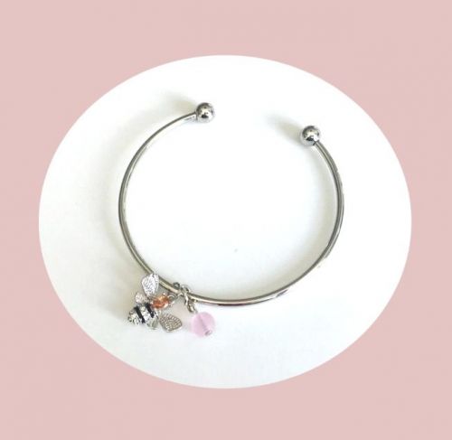 Art.code: 12415-1102 Bracelet with Bee and pink Bead Colour: silv...Bracelet with Bee and pink Bead Colour: silver colored Handmade Pink Bead - 5,9mm Open Bracelet with Screw Fastener - 65 x 62mm - 2mm Bee Pendant - 16,3 x 15,7cm Packed in luxury Organza B... Read moreMore infomation -