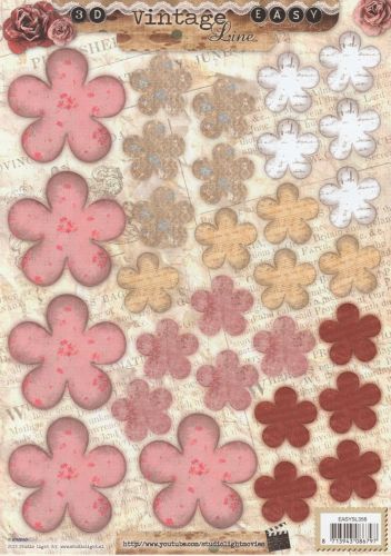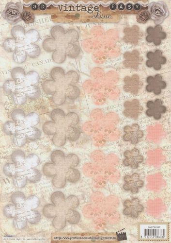 Art.code: EASY-356 Flowers Vintage - 3 D A4 Step by Step Die Cut She...Flowers Vintage - 3 D A4 Step by Step Die Cut Sheet Size: A4 - 21 x 29,7cm - 8.3 x 11.7in A4 Sheet on good quality white paper1 Sheet in A4 Hanger Bag With clear step by step description Acid-free an... Read moreMore infomation -