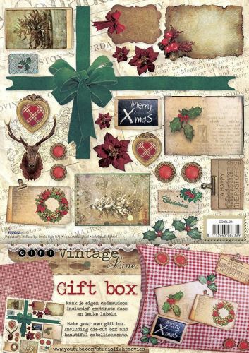 Art.code: CD-22 Gift Box - Christmas Vintage Size: 16 x 12 x 3cm ...Gift Box - Christmas Vintage Size: 16 x 12 x 3cm Contents: 1 Box + Different Labels1 Box in A4 Hanger Bag The box is die-cut - So you do not need scissors. Complete packet for making a gift box. Incl... Read moreMore infomation -