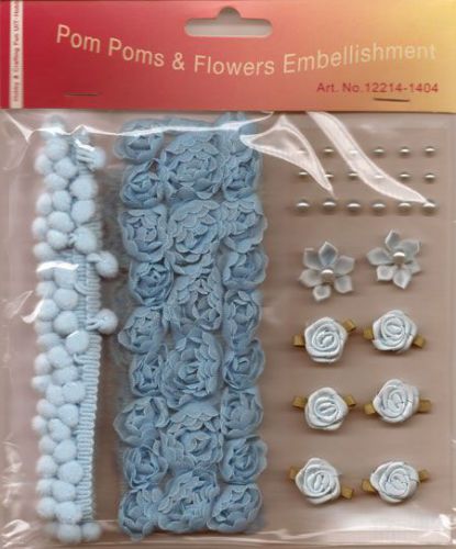 Art.code: 12249-4902 Pom Poms & Flowers Embellishment Set Colour: Blue...Pom Poms & Flowers Embellishment Set Colour: Blue Headerbag Ean-code: 8716659091741 These Poms will bring your cards, collage, clothes and home decoration to life. This is a very functionel craft pro... Read moreMore infomation -