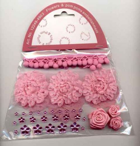 Art.code: 12249-4903 Pom Poms & Flowers Embellishment Set Colour: Pink...Pom Poms & Flowers Embellishment Set Colour: Pink Headerbag Ean-code: 8716659091758 These Poms will bring your cards, collage, clothes and home decoration to life. This is a very functionel craft pro... Read moreMore infomation -