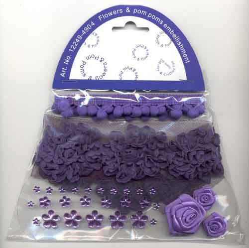 Art.code: 12249-4904 Pom Poms & Flowers Embellishment Set Colour: Lila...Pom Poms & Flowers Embellishment Set Colour: Lilac Headerbag Ean-code: 8716659091765 These Poms will bring your cards, collage, clothes and home decoration to life. This is a very functionel craft pr... Read moreMore infomation -