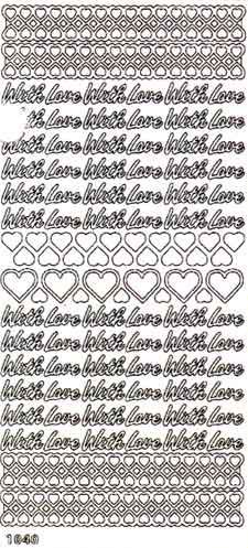 Art.code: 1040-2 With Love - Peel- Off Stickers Sheet Colour: Silv...With Love - Peel- Off Stickers Sheet Colour: Silver Size: 10 x 23cm - 3.9 x 9.1in Available in colours: Gold-1, Silver-2, Multi-3 Acid free Peeloffs are outline hobby stickers of the best quality and... Read moreMore infomation -