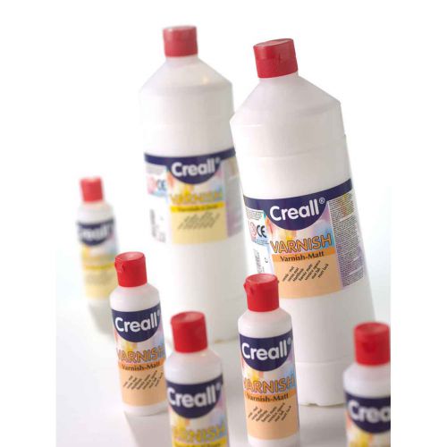 CREALL VARNISH Matt is a safe waterbases varnish, dries crystal clear an protects and makes creations waterproof.