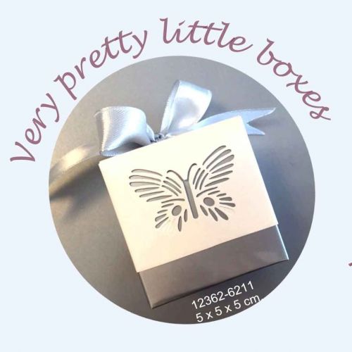 Code de L’article: 12362-6211 Papillon Boîtes de papier Couleur: Argent ...Papillon Boîtes de papier Couleur: Argent et Blanc Format: 5 x 5 x 5cm10 pièces suspendus sac Avec ruban Code E A N: 8716659101792... Description longuePlus d’informationConnectez-vous ou Inscrivez-vous pour ajouter des produits à vos favoris. -