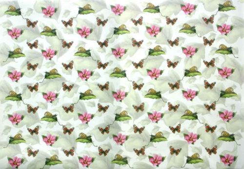 Paint the subject first in the relevant foundation colour. Cut out or tear out the design from the decor vloei. Apply Decoupage glue(LIJ-101) onto the subject to be used (Flowerpot, Roofing Tile, etc.) Put the cut-out decor vloei on it and smooth it out nicely. Spread out some glue over it once more. If you want to put or hang the subject outdoors it should be lacquered all over with Creall varnish(91001 and 91002) or Paverpol varnish(PA-030 / 41).