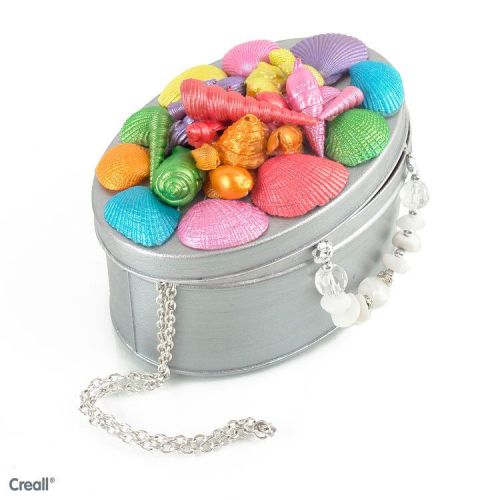 Peinture nacrée résistante à l'eau. Prête à l'emploi. Effets de couleurs remarquables. Satinée après séchage. De jolis effets sur les objets sphériques. Pour le tamponnage, l'imprimerie, le grattage et le pliage. Mélangée avec Creall-sticker medium, elle forme une sorte d'autocollant.