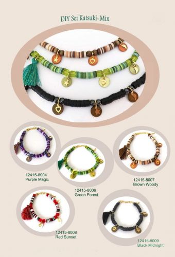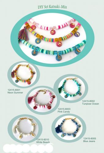 De sets bevat alle onderdelen om zelf het afgebeelde armbandje te maken.