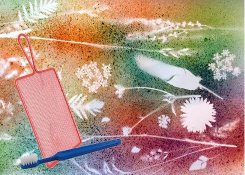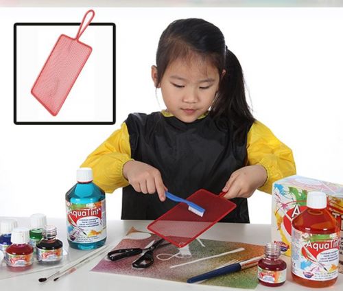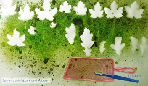Heel verrassende resultaten zijn te bereiken door AquaTint met tandenborstel of tamponeerkwast via het Spatraam te laten spatten.