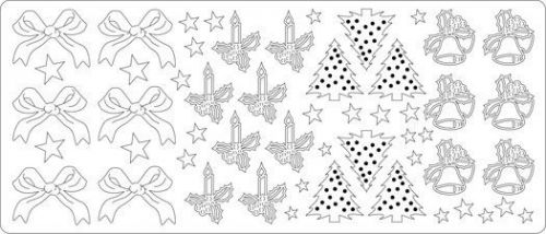 Art.code: ST-1502-1 Kerstbomen - Kaars - Bellen - Strikje - Peel- Off...Kerstbomen - Kaars - Bellen - Strikje - Peel- Off Stickervel Kleur: Goud Formaat: 10x23cm Verkrijgbaar in de kleuren: Goud-1, Zilver-2, Multi-3 Zuurvrij Peeloffs zijn outline stickers van de beste kw... Lees meerMeer informatieLog in of meld je aan om toe te voegen aan favorieten. -