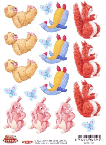 Art.code: 3DA5-205 Tuttels - 3 D Knipvel Formaat: A5 - 14,8 x 21cm A...Tuttels - 3 D Knipvel Formaat: A5 - 14,8 x 21cm A5 Vel Gedrukt op wit kwaliteitspapier Zuur en Houtvrij papier wat niet verkleurt bij veroudering Leuk voor het maken van onder andere Kaarten, S... Lees meerMeer informatieLog in of meld je aan om toe te voegen aan favorieten. -